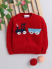 • Design: Vibrant red pullover with fun knitted train Design on the chest. Full sleeves and ribbed hem/cuffs for snug winter comfort. Easy pullover style—stretchy round neck for quick dressing.