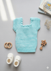 Design: Sleeveless pullover-style vest in a soft sky blue knit. Ribbed armholes and waistline for a secure yet gentle fit. Decorative textured neckline adds a handcrafted charm.