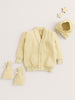 Little Angels Little Angels Sweater Set Baby Wool Full Sleeves V-Neck Striped in a Pearl Pattern Pink 3-Piece Set Sweater Sets Zaggy Cuddles Baby Knit Set Yellow / Baby Wool / 0-3 M