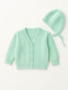Little Angels Little Angels Sweater Set Baby Wool Full Sleeves V-Neck Striped in a Pearl Pattern Pink 3-Piece Set Sweater Sets Zaggy Cuddles Baby Knit Set 3-6 M / Green / Baby Wool