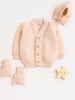 Little Angels Little Angels Sweater Set Baby Wool Full Sleeves V-Neck Striped in a Pearl Pattern Pink 3-Piece Set Sweater Sets Zaggy Cuddles Baby Knit Set Peach / Baby Wool / 0-3 M