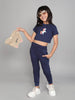 Little Angels Little Angels Crew Neck Short Sleeves Yellow Cotton Printed Crop Top with Joggers For Baby Girls Co-ords Trendy Twos Cotton Co-ord Set 4-5Y / Navy / Cotton