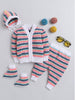 Little Angels Little Angels V-Neck Full Sleeves Striped White & Orange Cardigan, Pants, Cap & Socks Sweater Sets Frosty Fun Knit Set 0-3M / White & Navy / Baby Wool