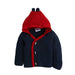 Little Angels Little Angels Baby Wool Hooded Neck Full Sleeves Color-Block Cardigan Sweater For Baby Boys and Girls Cardigan Buttoned Up with Bear Hugs Cardigan 6-12M / Navy & Red / Baby Wool