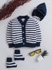 Little Angels Little Angels Sweater Set Baby Wool Full Sleeves V-Neck Fair Isle Knitted Red 3-Piece Set Sweater Sets Navy & White Striped Woollen Cardigan with ‘I Love Dad’ Sweater 0-3M / Navy & Cream / Baby Wool