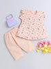 Little Angels Little Angels Round Neck Frill Sleeves Blue Cotton Printed Frock with Pants For Baby Girls Combos Twirl & Tumble Frock with Capri 3-6M / Peach / Cotton