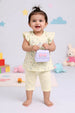 Little Angels Little Angels Round Neck Frill Sleeves Blue Cotton Printed Frock with Pants For Baby Girls Combos Twirl & Tumble Frock with Capri 3-6M / Yellow / Cotton