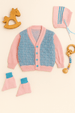 Little Angels Little Angels V-Neck Full Sleeves Full Sleeves Basketweave Cardigan, Tie-Knot Cap and Socks Sweater Sets Timeless Baby Knitted Outfit 0-3 M / Blue & Pink / Baby Wool