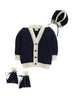 Little Angels Little Angels Sweater Set Baby Wool Full Sleeves V-Neck Jacquard Star Design Yellow & Navy 3-Piece Set Sweater Sets Baby Knitted Cardigan Set 0-3M / Navy & Cream / Baby Wool
