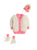 Little Angels Little Angels Sweater Set Baby Wool Full Sleeves V-Neck Jacquard Star Design Yellow & Navy 3-Piece Set Sweater Sets Baby Knitted Cardigan Set 0-3M / NeonPink & White / Baby Wool