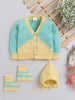 Little Angels Little Angels Sweater Set Baby Wool Full Sleeves V-Neck color-block Green & Yellow 3-Piece Set Sweater Sets Buttercup Snuggle Baby Outfit 0-3M / Green & Yellow / Baby Wool