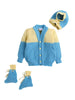 Little Angels Little Angels Sweater Set Baby Wool Full Sleeves V-Neck Color-Block with Basketweave Filling Design Red & Navy 3-Piece Set Sweater Sets Toasty Tots Winter Charm Set 0-3M / Blue & Yellow / Baby Wool