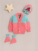Little Angels Little Angels Sweater Set Baby Wool Full Sleeves V-Neck Color-Block with Basketweave Filling Design Red & Navy 3-Piece Set Sweater Sets Toasty Tots Winter Charm Set 0-3M / NeonPink & Green / Baby Wool