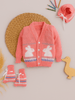 Little Angels Little Angels Sweater Set Baby Wool Full Sleeves V-Neck Jacquard Rabbit Design Navy 3-Piece Set Sweater Sets Cuddle Bunny Sweater Set 0-3M / Neon Pink / Baby Wool