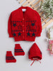 Little Angels Little Angels Sweater Set Baby Wool Full Sleeves V-Neck Jacquard Star Design Red & Navy 3-Piece Set Sweater Sets Twinkle Nest Baby Knit Set