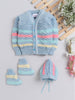 Little Angels Little Angels V-Neck Full Sleeves Full Sleeves Multi Striped Cardigan, Tie-Knot Cap and Socks Sweater Sets Twinkle Weave Baby Wool Set 0-3M / Blue / Baby Wool