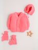 Little Angels Little Angels Sweater Set Baby Wool Full Sleeves V-Neck Solid with Pyramid Design Peach 3-Piece Set Sweater Sets Diamond Buds Baby Knitwear Set 3-6 M / Neon Pink / Baby Wool