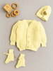 Little Angels Little Angels Sweater Set Baby Wool Full Sleeves V-Neck Solid with Pyramid Design Peach 3-Piece Set Sweater Sets Diamond Buds Baby Knitwear Set 3-6 M / Yellow / Baby Wool