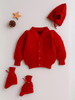 Little Angels Little Angels Sweater Set Baby Wool Full Sleeves V-Neck Solid with Pyramid Design Red 3-Piece Set Sweater Sets Diamond Buds Baby Knitwear Set