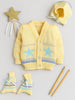 Little Angels Little Angels V-Neck Full Sleeves Full Sleeves Star Cardigan, Tie-Knot Cap and Socks Sweater Sets Mini Explorer Winter Outfit 0-3 M / Yellow / Wool