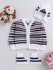 Little Angels Little Angels Sweater Set Baby Wool Full Sleeves V-Neck Striped Cream 3-Piece Set Sweater Sets Lil Firecracker Winter Wear Set 0-3M / White / Baby Wool
