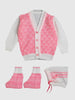 Little Angels Little Angels Sweater Set Baby Wool Full Sleeves V-Neck Textured Triangle Blue & White 3-Piece Set Sweater Sets Snow Cone Snugglewear Set 0-3M / NeonPink & White / Baby Wool