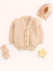 Front-button full-sleeve cardigan, matching bonnet with tie-up strings and pair of warm mittens