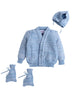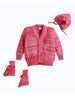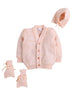 Front-button full-sleeve cardigan, matching bonnet with tie-up strings and pair of warm mittens